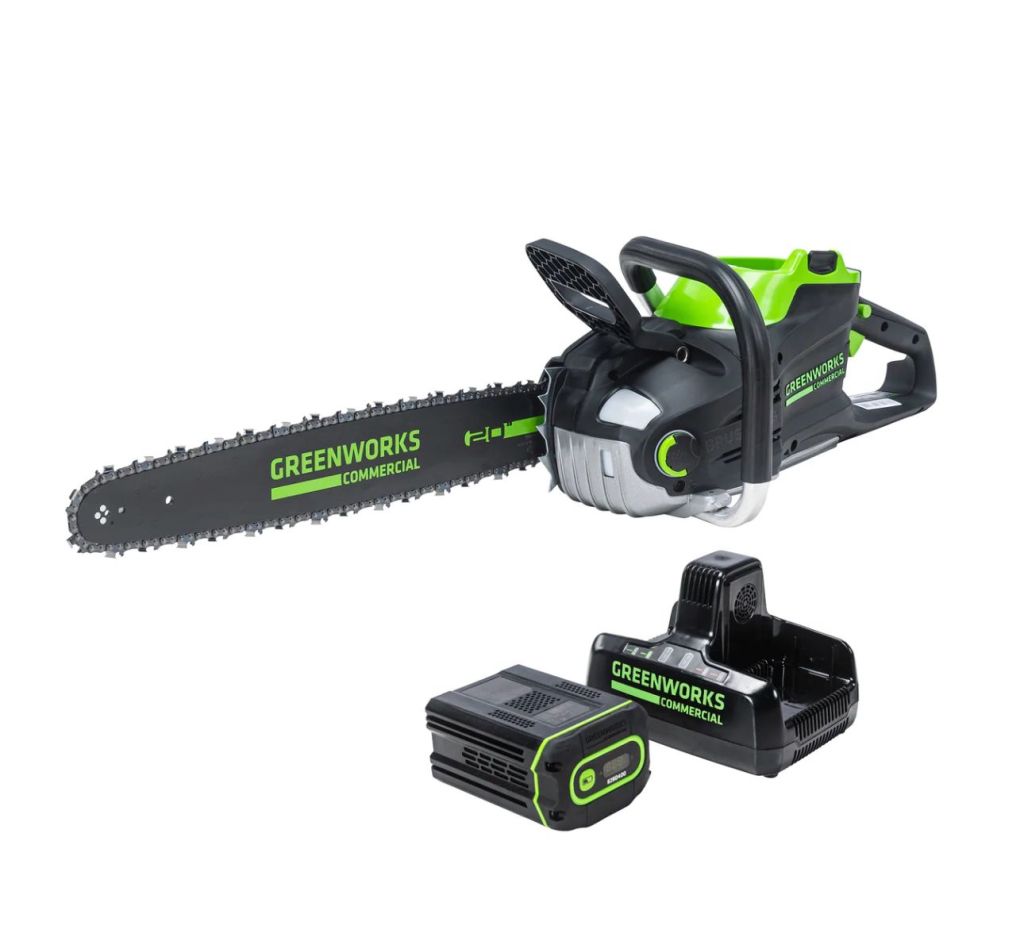 20″ green works chainsaw.